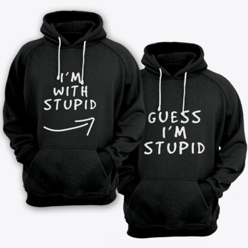 Вы можете купить Парные толстовки с капюшоном для влюбленных "I'm with stupid" и "Guess i'm stupid" в Москве.